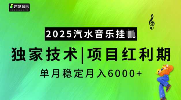 2025汽水音乐挂JI,独家技术,项目红利期,稳定月入5k【揭秘】
