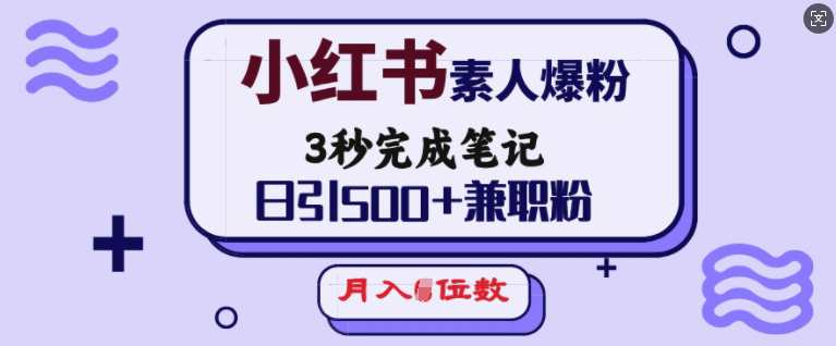 小红书素人爆粉,3秒完成笔记,日引500+兼职粉,月入5位数